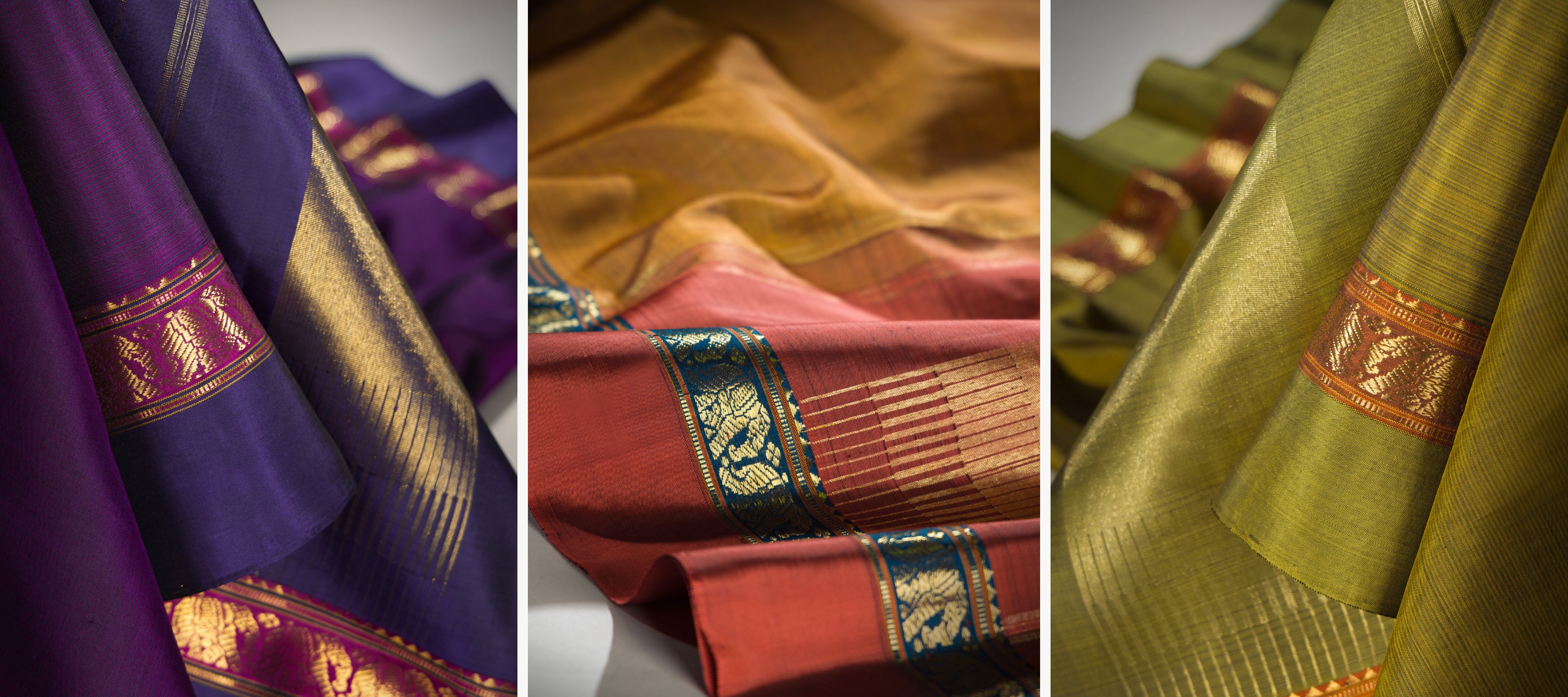 The kanjivaram's beauty lies in its extraordinary simplicity, staying true to tradition while showcasing the craft's deft use of colour and technique in its exquisite detail.